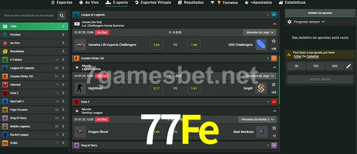 A aposta 77Fe oferece aos jogadores a experiência mais conveniente de apostas em eSports!